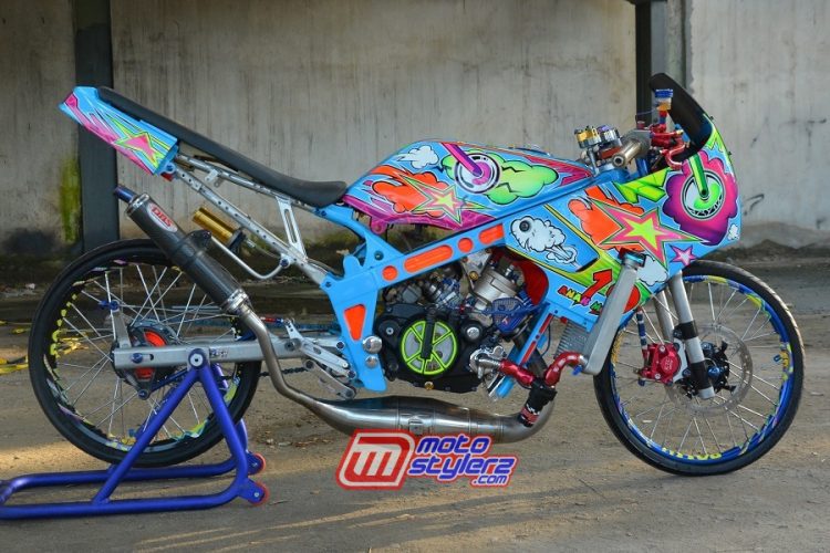 Fairing: Ninja SSR, Kedok Dpn: Ninja SSR, Stang: QTT, Handle: KTC, Stabilizer: Ohlins, Speedometer: Koso, Tromol Dpn: Wave, Tromol Blk: Kaze, Cakram: Wave, Kaliper: KTC, Sokbreker: Custom Wave, Suspensi: Gazi, Swingarm: DKT, Footstep: DKT, Knalpot: DBS, Modifikator: Tokecang Racing Team, Jl. Perintis Kemerdekaan, Jebrod, Cianjur-Jawa Barat (082213363364)