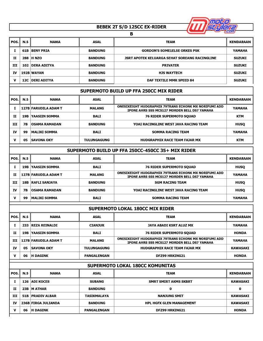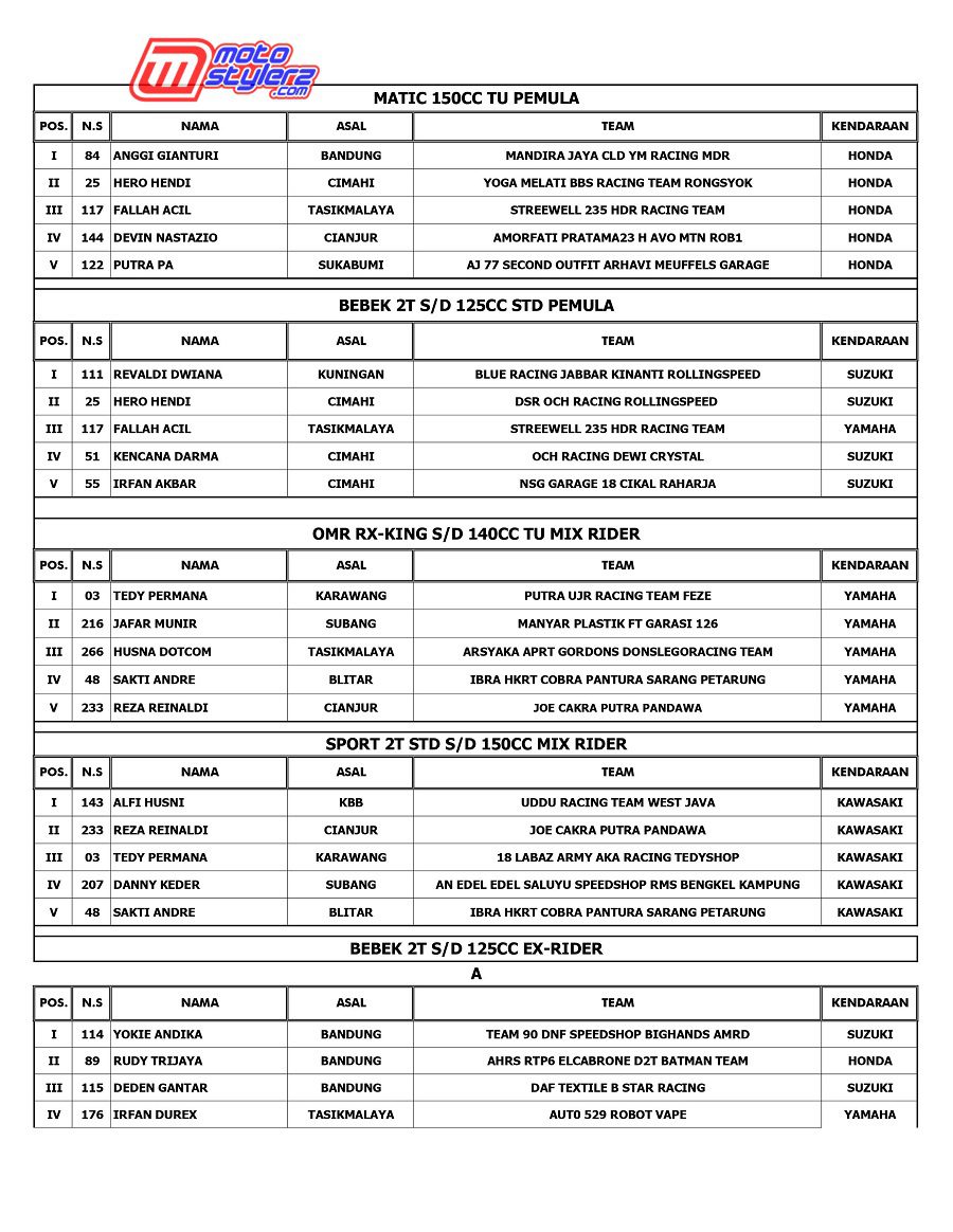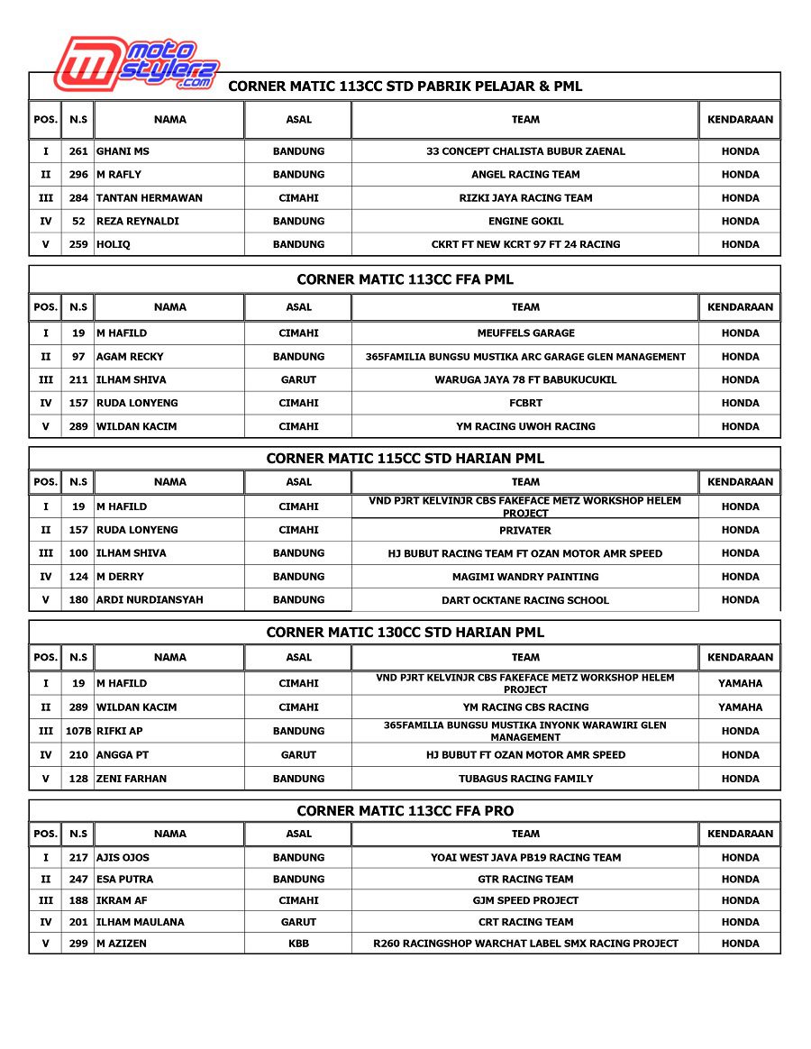 Event bertajuk Sumber Production Championship akhirnya kembali menyapa pencinta road race & cornerace Jawa Barat. Pastinya kemasan promotor Sumber Production yang berlangsung sukses 1-2 November di Sirkuit NP Brigif Cimahi. Berikut hasil lengkap juaranya. /Nuadjah