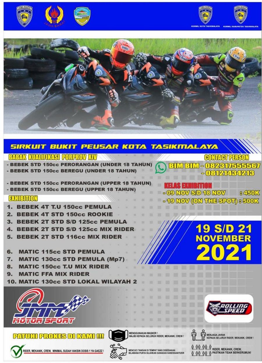 Persaingan sengit antar pembalap road race Jawa Barat bakal kembali tersaji di sirkuit Bukit Peusar,  Tasikmalaya akhir pekan ini 19-21 November 2021. Tentunya bareng titel Babak Kualifikasi Porprov Jabar Cabor Balap Motor yang diprediksi disuguhkan seru, pasalnya gengsi para pembalap yang membawa nama Kota & Kabupaten di Provinsi Jabar ini jadi taruhannya.