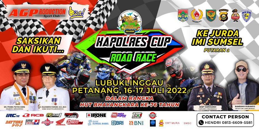 Pesta balap motor tahunan seantero Sumatera Selatan, kemasan bung Hendri selaku promotor berpanji AGP Sport Club dipastikan akan berlangsung 1 bulan mendatang or tepatnya 16-17 Juli 2022. Yess, ini merupakan agenda pertama alias seri pembuka momen special bertajuk Kejurda IMI Sumsel Kapolres Cup Road Race yang ready disuguhkan di lintasan GOR Petanang, Lubuklinggau.