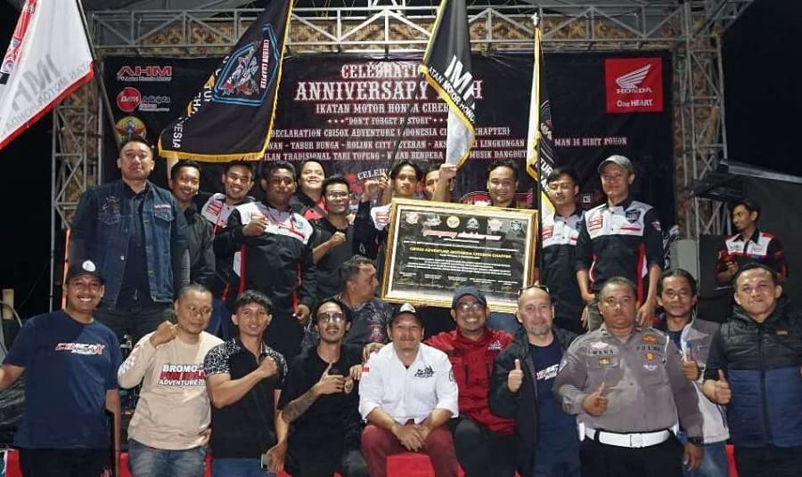 Mantab, komunitas Honda CB150X Adventure Indonesia Chapter Cirebon resmi terbentuk, Sabtu (11-11/23) bertepatan dengan 14th Anniversary Ikatan Motor Honda Cirebon (IMHC) yang dihelat di Zona Wisata UMKM Rindoe Taloen Sampiran – Cirebon girang, Kec. Talun Kab. Cirebon, Jawa Barat.