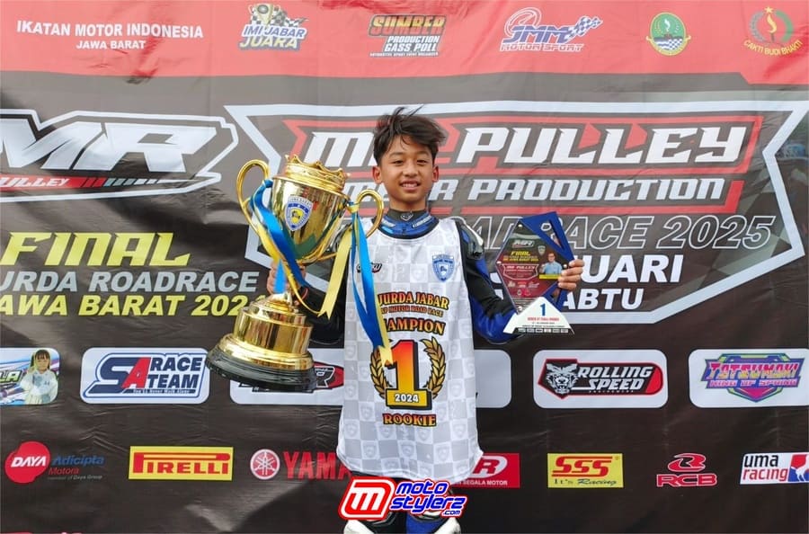 Arkana Ocktane sukses menjadi pembalap paling disoroti dalam gelaran Final Kejurda Road Race IMI Jabar dengan berhasil menyabet podium tertinggi di kasta Rookie, Sabtu (18 Januari 2025) di Sirkuit NP Brigif 15 Kujang II Cimahi dengan disaksikan ribuan penonton yang hadir.