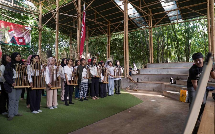 School Camp 2025 bertajuk “Generasi Muda Beraksi, Angklung Sekolah Satu Hati Menginspirasi” diharapkan dapat mengembangkan kemampuan generasi muda dalam menyelami budaya dan seni angklung dengan dipandu langsung oleh para penggiat dan pengrajin alat musik angklung.