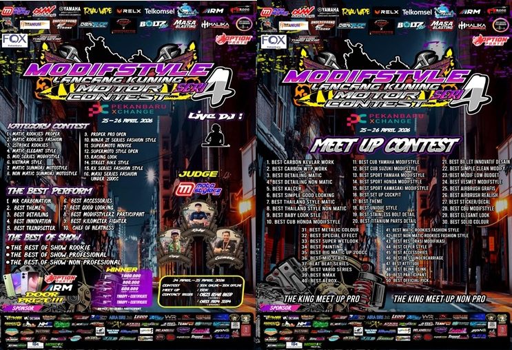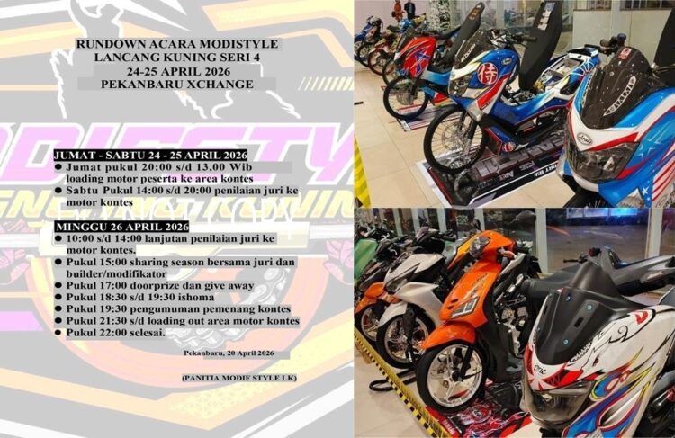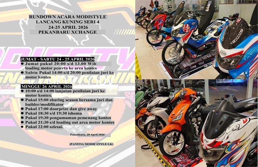 Gaung Modifstyle Lancang Kuning Motor Contest #4 semakin membahana di pulau Sumatera. Even yang siap dipentaskan megah di mall Pekanbaru XChange selama dua hari, Sabtu-Minggu (25-26 April 2026) membuat penyelenggara kian bersemangat.